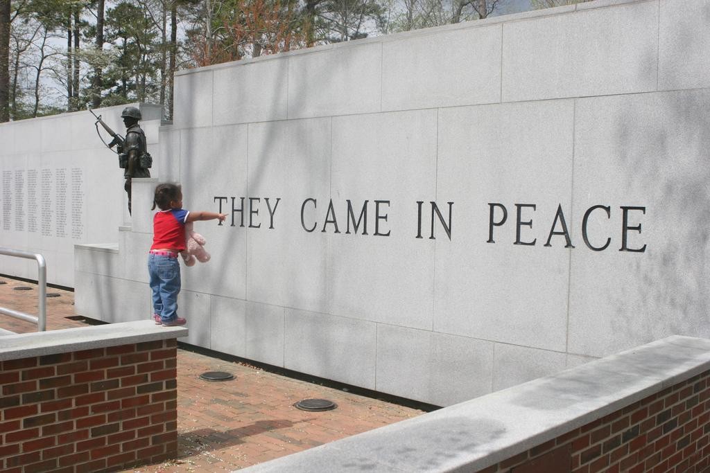 The completed memorial is in the form of two broken walls, representing the crumbled remains of the compound after the explosion, with a pedestal in between supporting a statue depicting a Marine in a peacekeeping pose. Inscribed on the memorial are the words “They Came in Peace,” along with the names of the 273 military personnel that died as a result of the terroristic act. Although some entities have contested the claim, the United States has officially designated the destruction of the barracks as an act of terrorism, rather than an event of war. Ceremonies are held annually at the site as a commemoration, and on the 25th anniversary of the tragedy in 2011 the Gold Star Mothers – an organization of mothers that have lost a child serving in the military – placed an honorary plaque at the site.