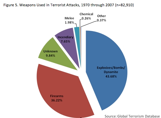 Statistics garnered from the Global Terrorism Database demonstrate that attacks have quadrupled in the world since September 11, 2001. However, deaths in terrorism attacks seem to have peaked in the year 2007, at the height of the Iraq War. In the decade following the 911 tragedy, those countries most affected by terrorism were Iraq, Pakistan, Afghanistan, India and Yemen – largely due to the violent activism of Islamic extremists or the ongoing war against terrorism. As summarized by The Huffington Post, the West’s war against al-Qaeda “may have simply made matters worse – while whether they made the U.S. homeland safer was impossible to prove.” Over the forty years included in the Global Terrorism Database, more than a third of the attacks on U. S. soil occurred in the 5 urban “hot spots” of New York, Los Angeles, Miami, San Francisco and Washington, D.C. Also ranked high by the National Consortium for the Study of Terrorism and Responses to Terrorism (START) are the cities of Chicago and Seattle. The three terrorist groups responsible for the most attacks within the U. S. homeland from 2001 to 2011 were the Earth Liberation Front (50), the Animal Liberation Front (34) and al-Qaeda (4). Worldwide, terrorists generally utilize the most readily available weapons to carry out their acts of violence: firearms and explosives. The video above is a “visualization” of the 2008 information revealed by GTD, as presented by digital artist Joao Martinho Moura. Before leaving this website, we kindly ask that you please remember to sign the petition by clicking the link below.